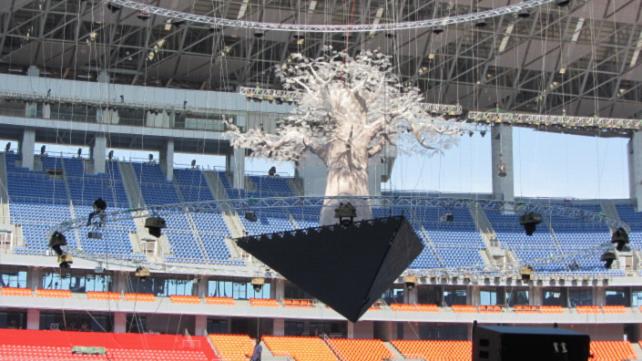 2012南寧國際民歌藝術(shù)節開(kāi)幕晚會(huì )舞臺重要元素之一——高科技的懸掛道具空中鋼樹(shù)