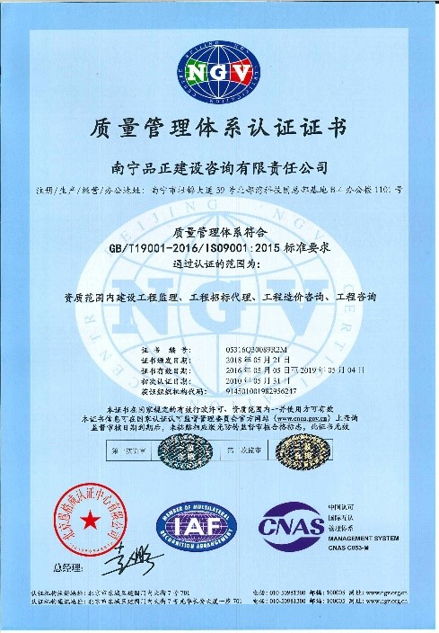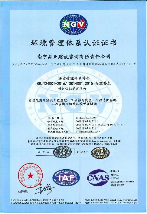 2018年5月,北京恩格威認證中心的QES審核員到南寧品正進(jìn)行質(zhì)量管理體系、環(huán)境管理體系和職業(yè)健康安全管理體系(簡(jiǎn)稱(chēng)QHES管理)通過(guò)認證審核工作。審核組認為,南寧品正現行的QHES管理系統文件符合國際國內有關(guān)強制性規定,適用于公司目前開(kāi)展的各項業(yè)務(wù)。