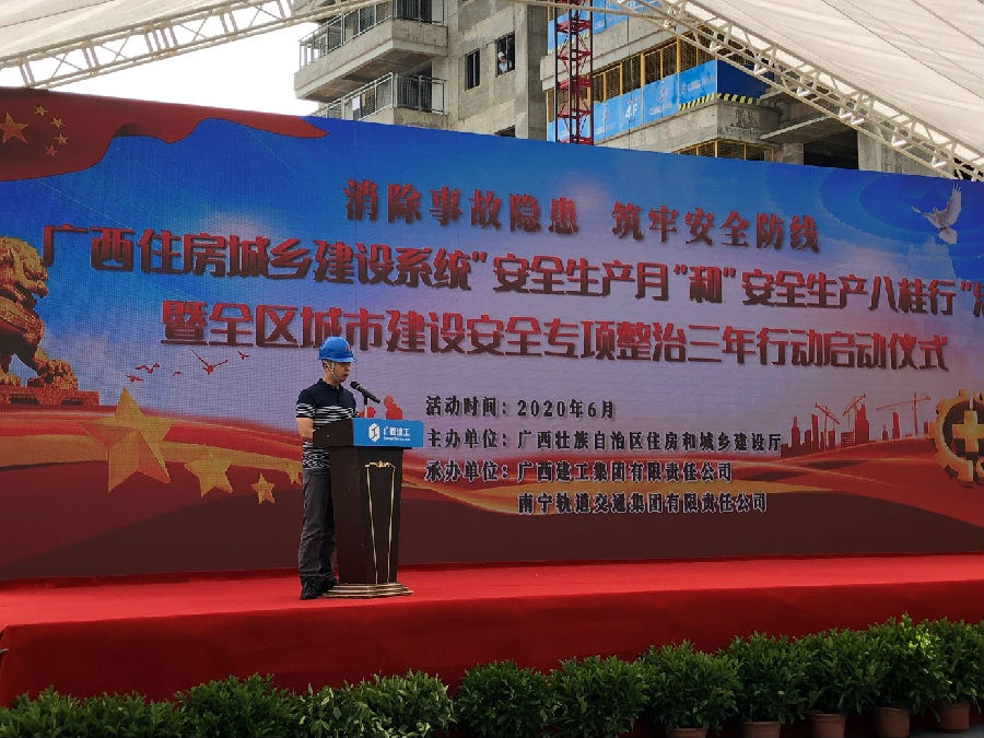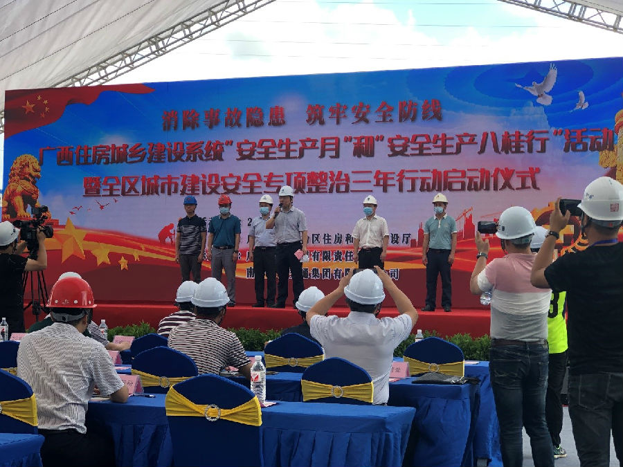 6月11日,全區住房城鄉建設系統“安全生產(chǎn)月”“安全生產(chǎn)八桂行”活動(dòng)暨全區城市建設安全專(zhuān)項整治三年行動(dòng)在我公司負責監理的南寧市軌道一號城項目舉行啟動(dòng)儀式。自治區住建廳、自治區應急廳、廣西建工集團、南寧軌道集團以及我公司領(lǐng)導出席了啟動(dòng)儀式并作重要講話(huà)。