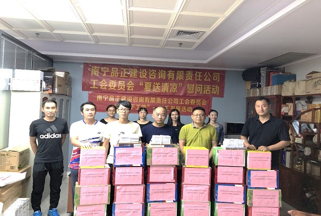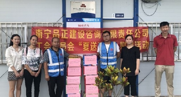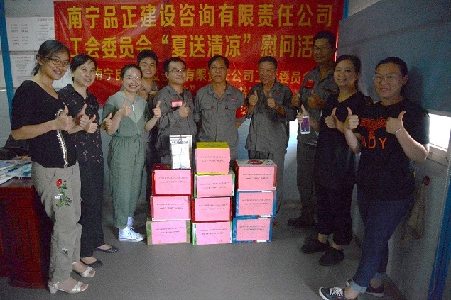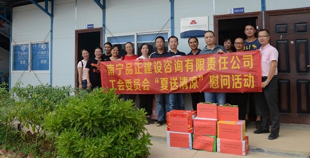 炎炎夏日,高溫持續,大家都陷入了“蒸桑拿”的模式,環(huán)衛工人、農民工的艱辛受到了社會(huì )大眾的關(guān)注。有這么一群人,他們同樣不畏高溫,不怕酷暑,在“桑拿”的天氣下,依舊堅守在崗位上,他們就是堅守一線(xiàn)監理崗位的員工。近日,由南寧品正建設咨詢(xún)有限責任公司工會(huì )委員會(huì )組織,公司總經(jīng)理羅順華、副總經(jīng)理蘇艷、工會(huì )主席梁秋霞以及工會(huì )委員組成的慰問(wèn)小組深入基層項目,慰問(wèn)頂著(zhù)烈日、堅守崗位的一線(xiàn)監理員工,給他們送去絲絲涼意和滴滴關(guān)愛(ài),讓他們在炎炎夏日中感受到公司工會(huì )“娘家人”對他們的關(guān)心。
