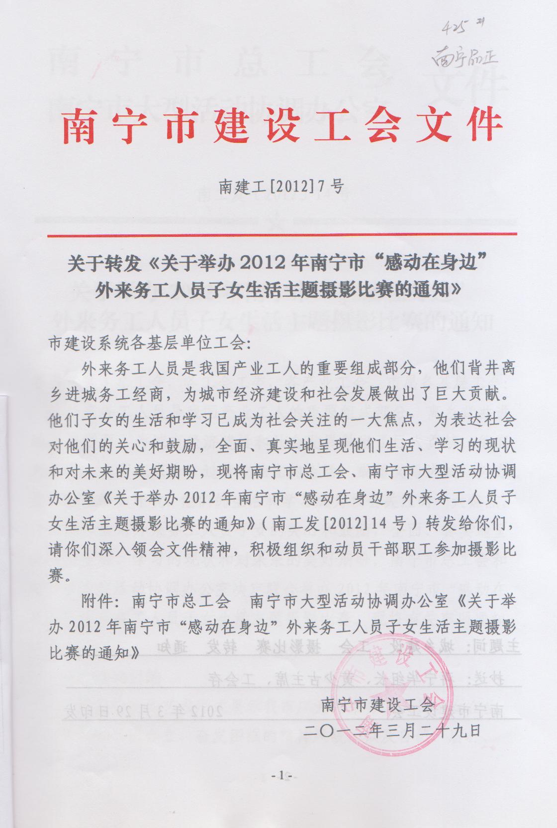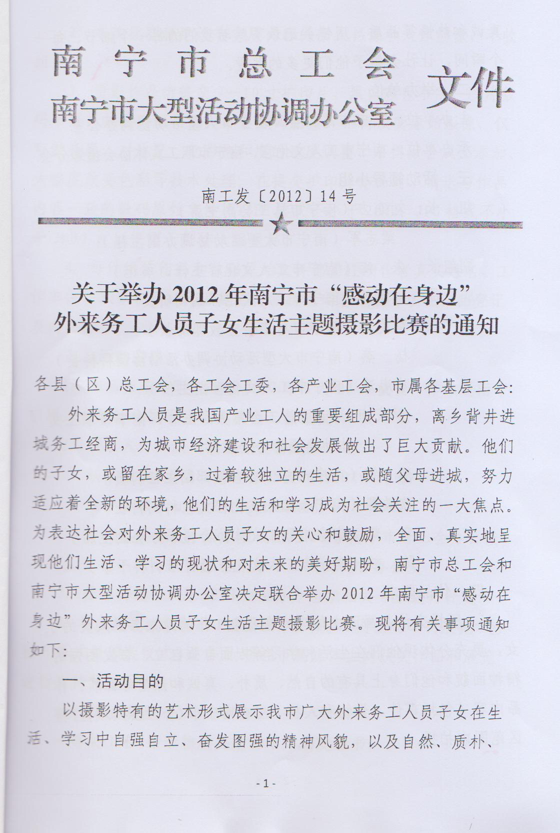 關(guān)于轉發(fā)《關(guān)于舉辦2012年南寧市“感動(dòng)在身邊”外來(lái)務(wù)工人員子女生活主題攝影比賽的通知》