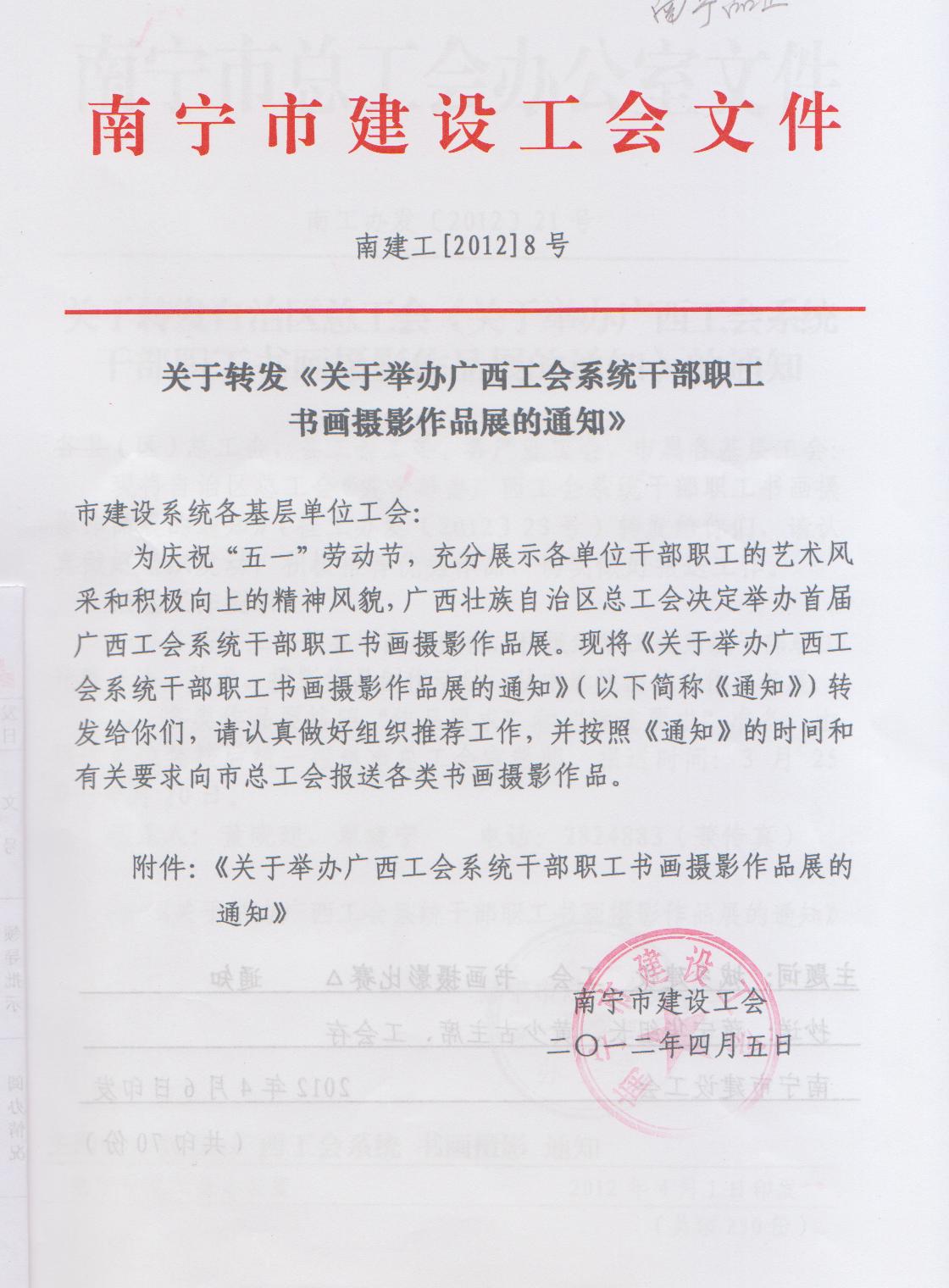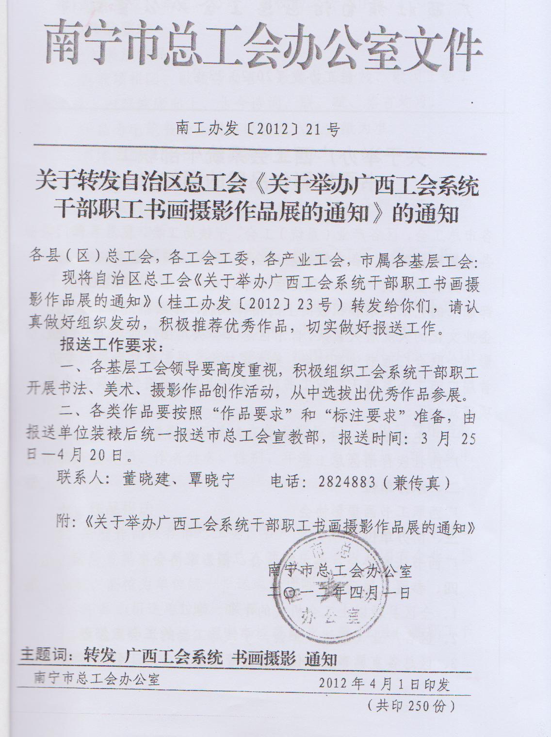 關(guān)于轉發(fā)《關(guān)于舉辦廣西工會(huì )系統干部職工書(shū)畫(huà)攝影作品展的通知》