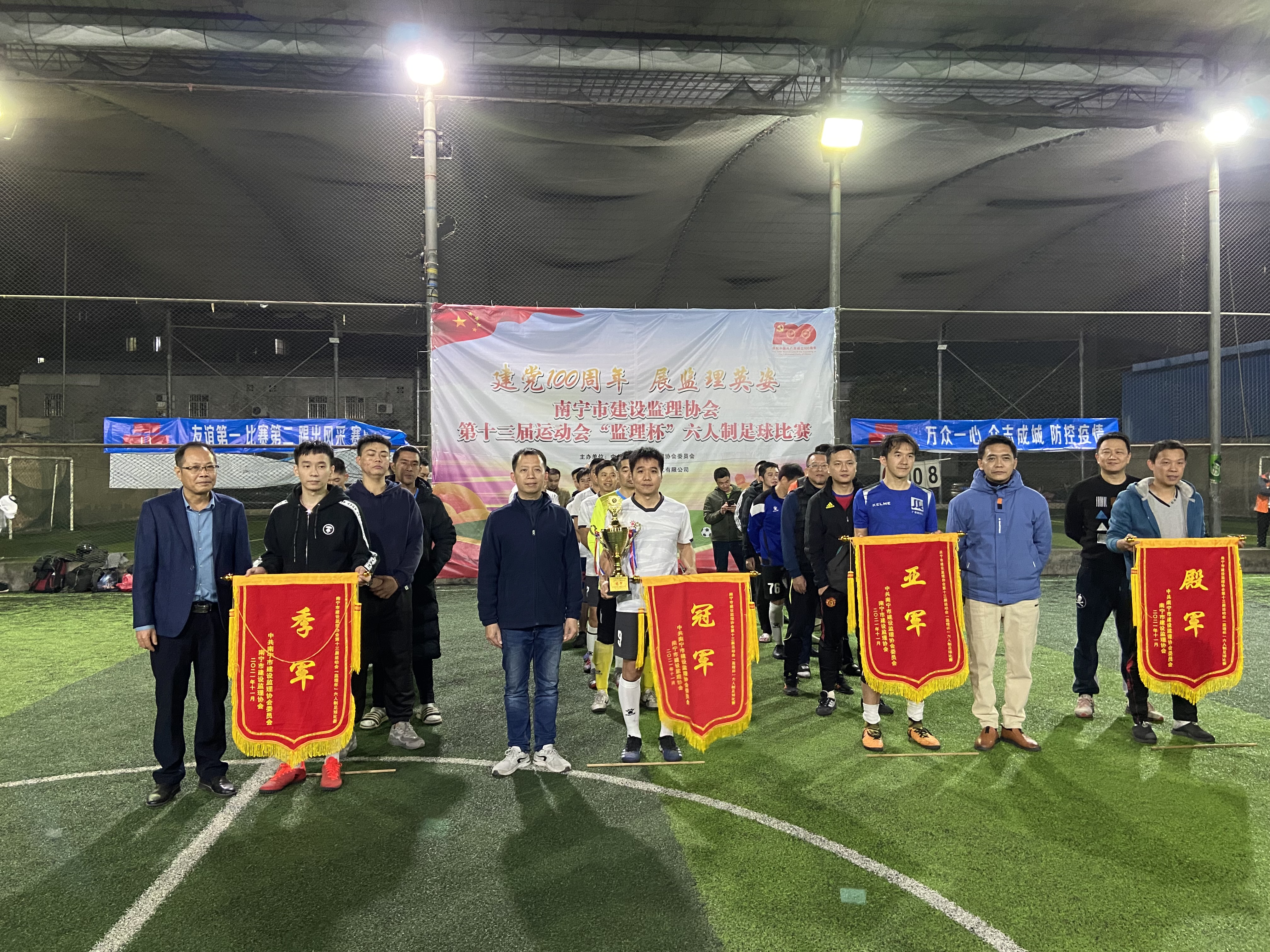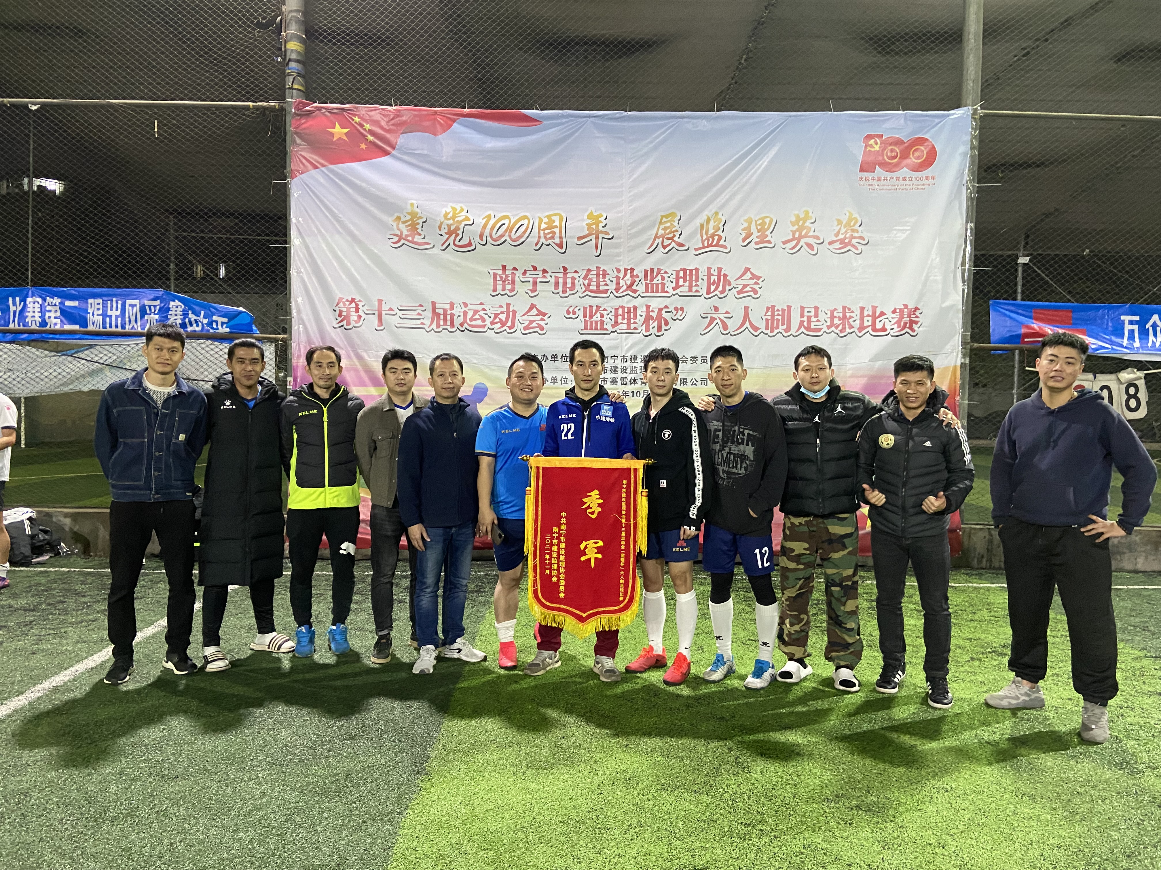 為慶祝中國共產(chǎn)黨建黨100周年,中共南寧市建設監理協(xié)會(huì )委員會(huì )和南寧市建設監理協(xié)會(huì )共同舉辦了南寧市建設監理協(xié)會(huì )第十三屆運動(dòng)會(huì )“監理杯”六人制足球比賽,經(jīng)過(guò)兩個(gè)多月緊張、激烈的比賽,于2021年12月23日23:00完美落幕,南寧品正足球隊在此次比賽中榮獲季軍。