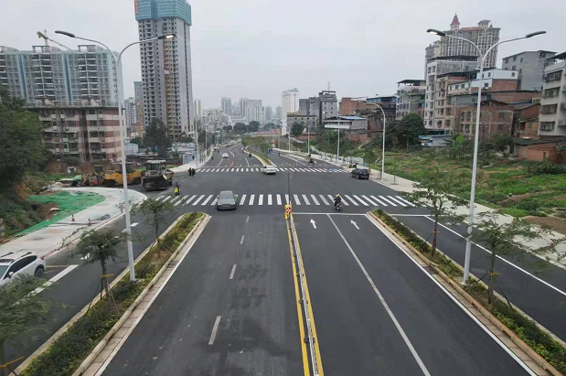 該項目建成通車(chē)后,進(jìn)一步拓展了城市脈絡(luò ),長(cháng)堽路和南梧路的車(chē)輛均可通過(guò)長(cháng)湖路北延長(cháng)線(xiàn)實(shí)現互相切換,不需要再繞行廂竹大道,極大提高通行效率,并且在一定程度上緩解廂竹大道的交通壓力。同時(shí),該項目也極大方便東溝嶺片區市民的交通出行,促進(jìn)東溝嶺片區進(jìn)一步融入城市發(fā)展圈。
