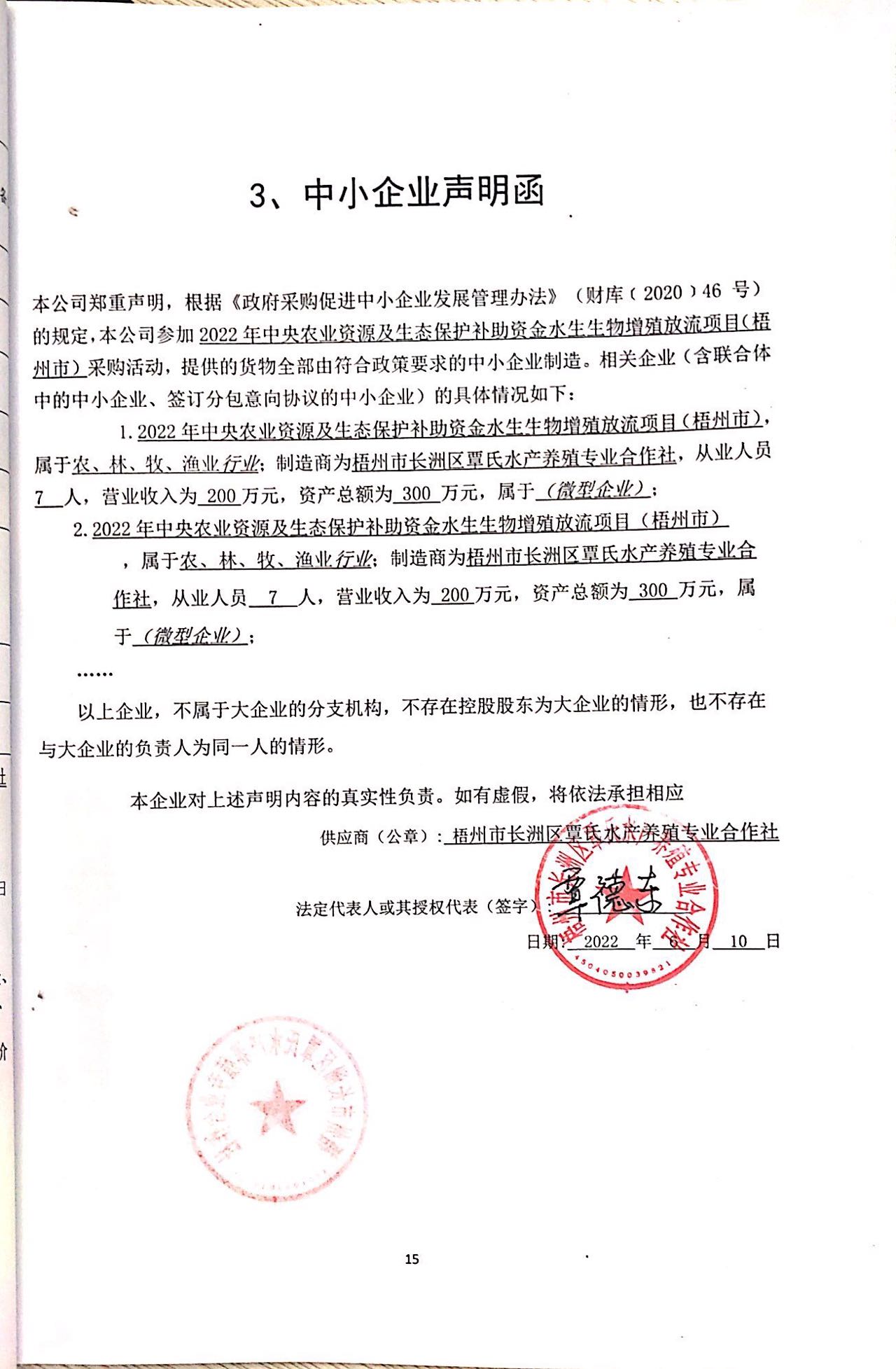 2022年中央農業(yè)資源及生態(tài)保護補助資金水生生物增殖放流項目(梧州市)(NNPZWZ-2022-J1006) 成交結果公告