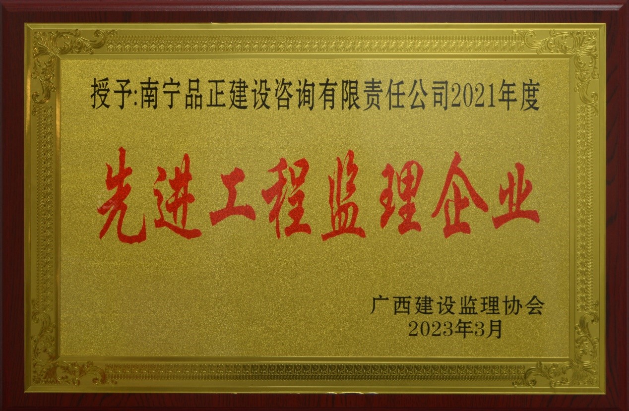 南寧品正榮獲廣西“2021年度先進(jìn)工程監理企業(yè)” 榮譽(yù)稱(chēng)號